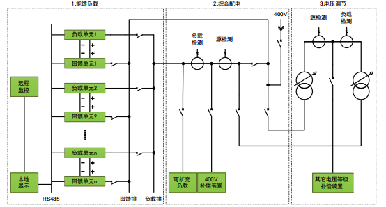 每個(gè)“負(fù)載單元”可以編程輸出各種負(fù)載波形,其輸入的有功功率通過(guò)“回饋單元”實(shí)現(xiàn)平衡。由于“回饋單元”可以實(shí)現(xiàn)雙向能量控制,因此“負(fù)載單元”通過(guò)編程可以模擬為阻性負(fù)載、容性負(fù)載、感性負(fù)載、整流器負(fù)載、電動(dòng)機(jī)、發(fā)電機(jī)等各種類(lèi)型的負(fù)載,也可以模擬以上幾種類(lèi)型負(fù)載的疊加。